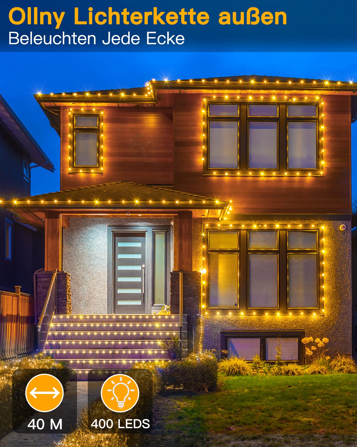 led lichterkette außen 40 m 2024 Ollny 400 LED String Lights Outdoor Waterproof 8 Modes Remote : TEXT_3. TEXT_4.